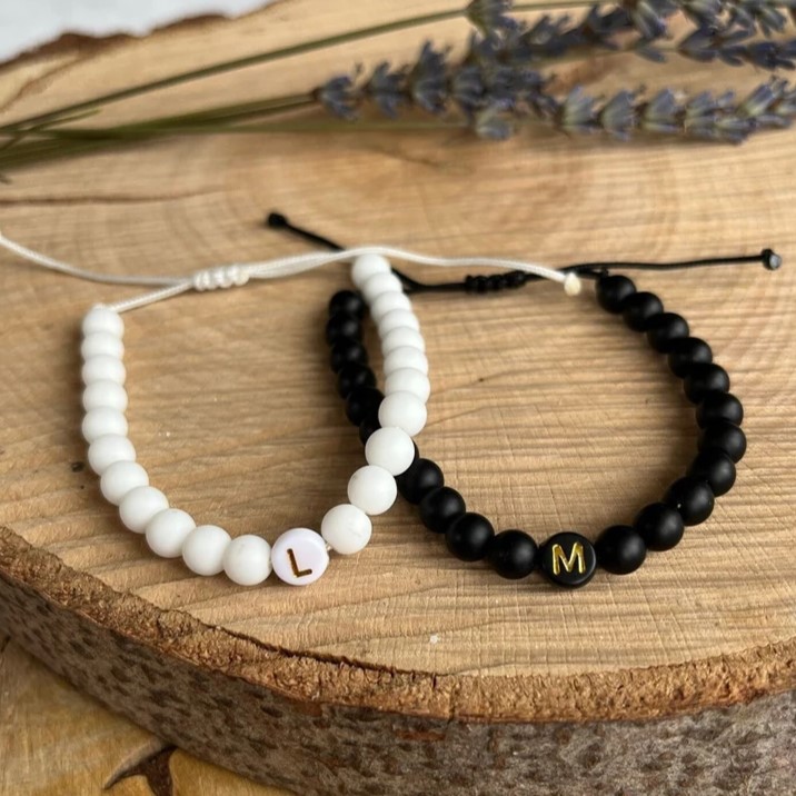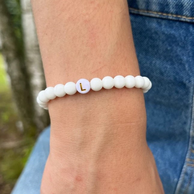 Pulseira artesanal de miçangas feita com letra do nome.